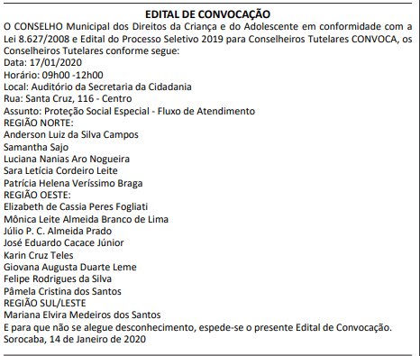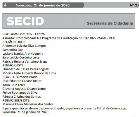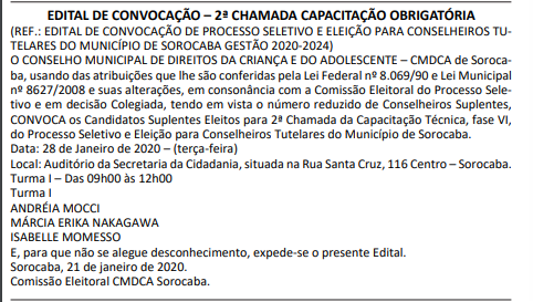 ERRATA – Convocação de Capacitação para conselheiros Tutelares – 2020/2024. Protocolo SAICA e PETI