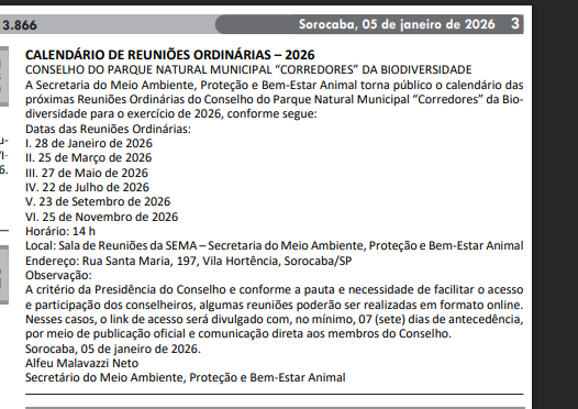 Pauta da 27a. Reunião Ordinária COMDEMA – Janeiro/2026